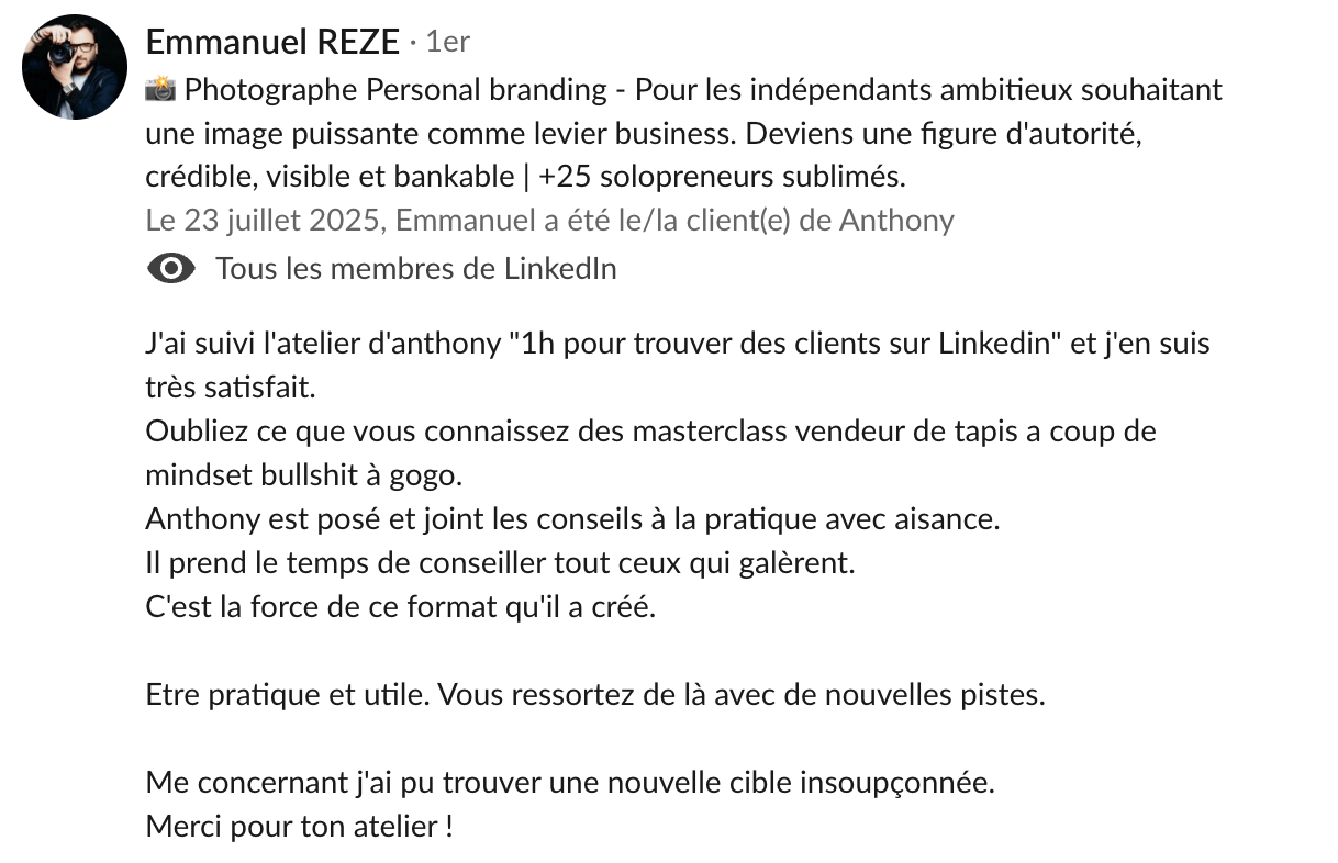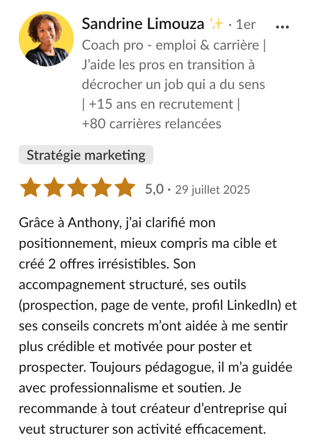 2ïžâŁ Je te guide pour rendre ton offre, ta promesse et ton profil Linkedin ultra clairs pour tes prospects